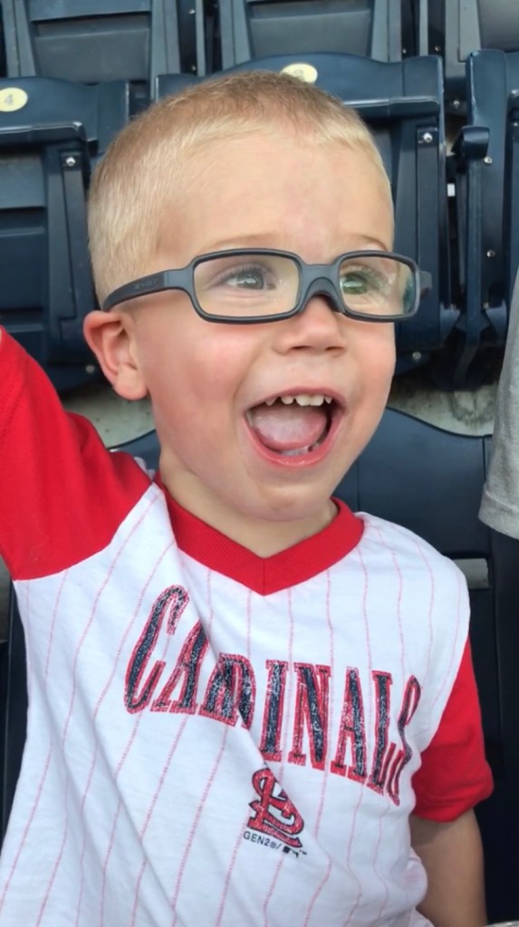 Cheering on the Cards between dippin’ dots at your first Cardinals baseball game.