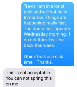 I told U3 that I was not happy that Dr. U and Dr. O did not communicate better. I asked that he communicate with Dr. O. I told U3 that I would be seeing Dr. O the following week and that after that visit I would make a decision on who was staying on Team Kev and who was going.